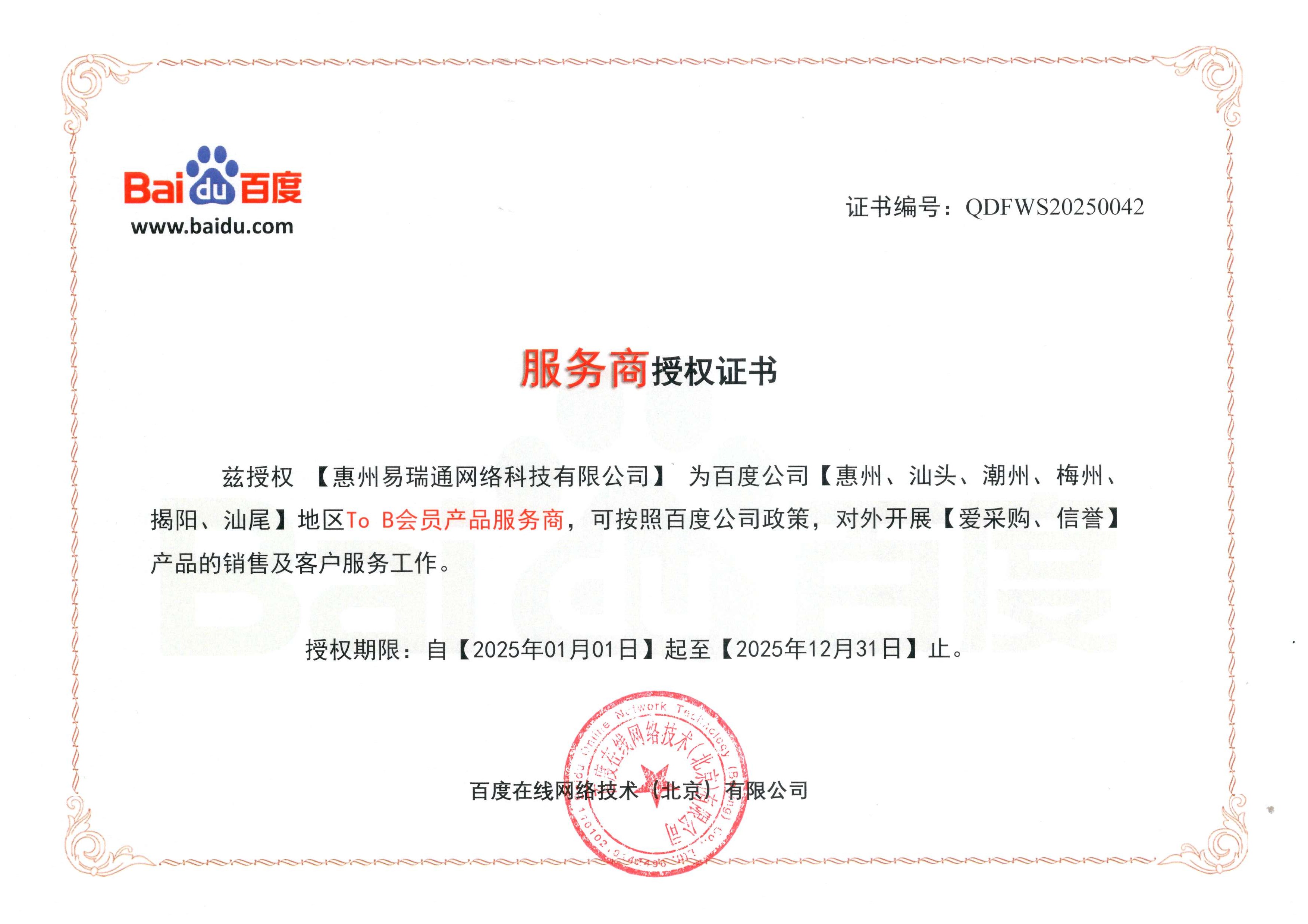 易瑞通網絡科技有限公司是一家綜合類的互聯(lián)網營銷服務企業(yè),致力于為全行業(yè)提供網站建設及優(yōu)化、百度營銷開戶及運營、愛采購開戶及推廣等服務,團隊在“關鍵詞管理”“效果跟蹤”“創(chuàng)意設計“”營銷咨詢“”品牌數(shù)字資產管理“等方面具備過硬的專業(yè)素質。