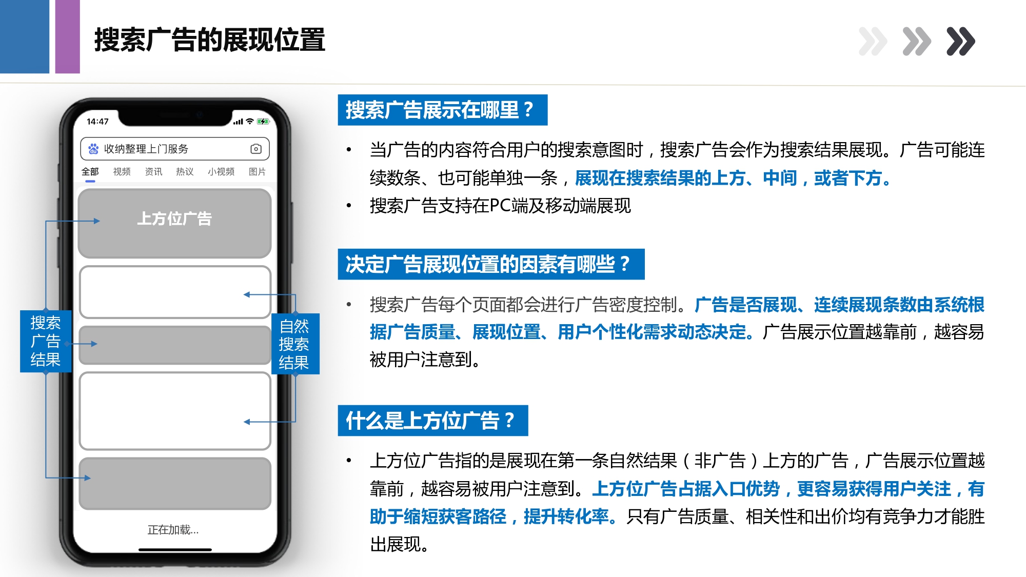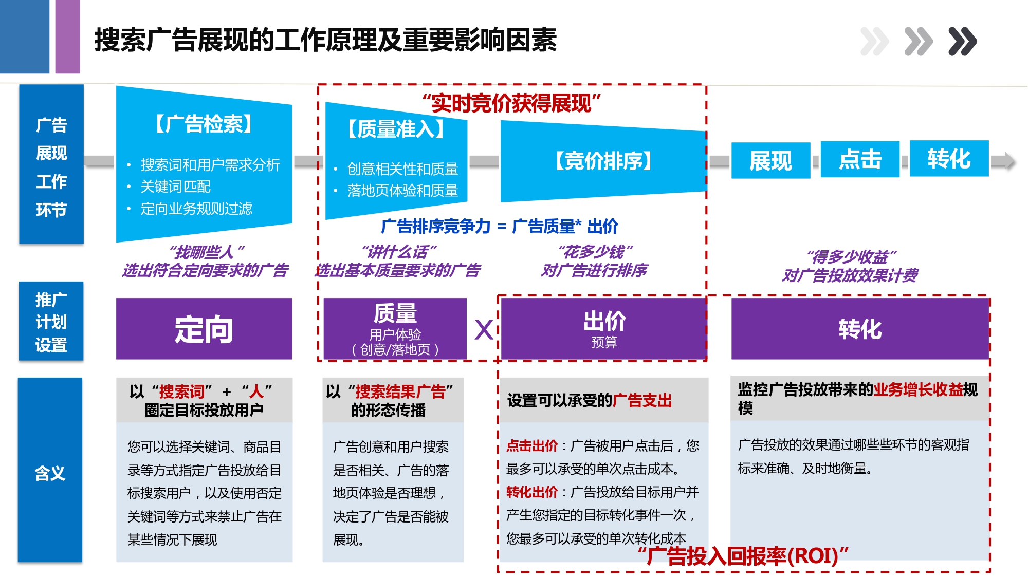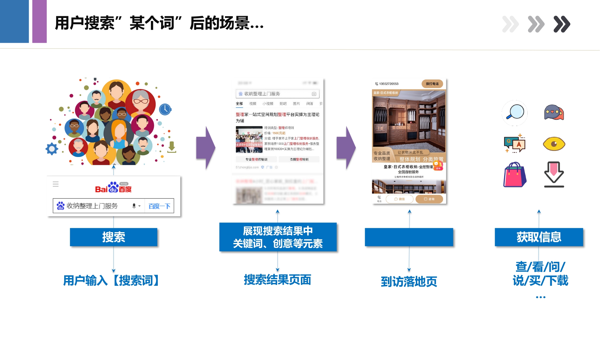 搜索推廣基于百度搜索引擎,用戶搜索關(guān)鍵詞,在百度搜索結(jié)果的顯著位置展示企業(yè)廣告信息,并幫助企業(yè)把用戶有效轉(zhuǎn)化為客戶的一種營(yíng)銷方式。